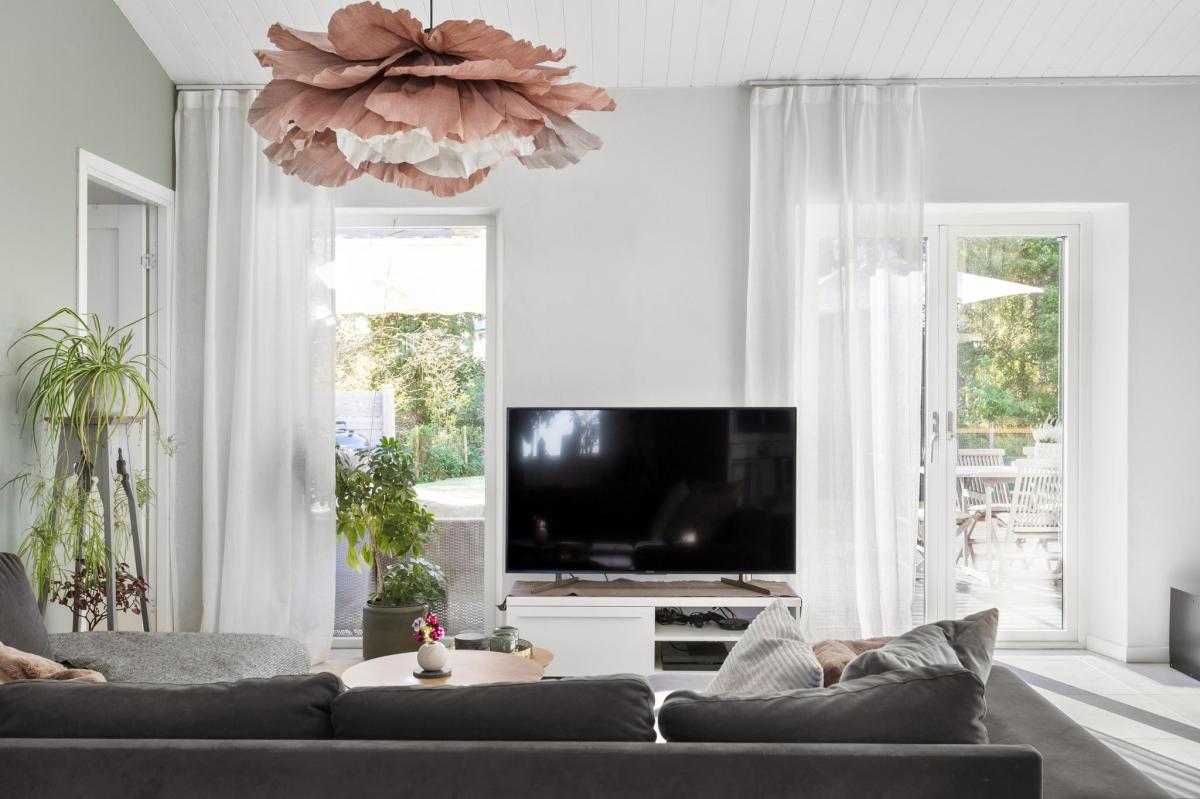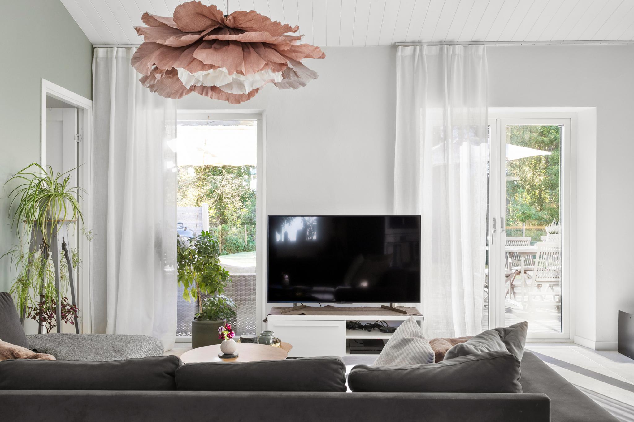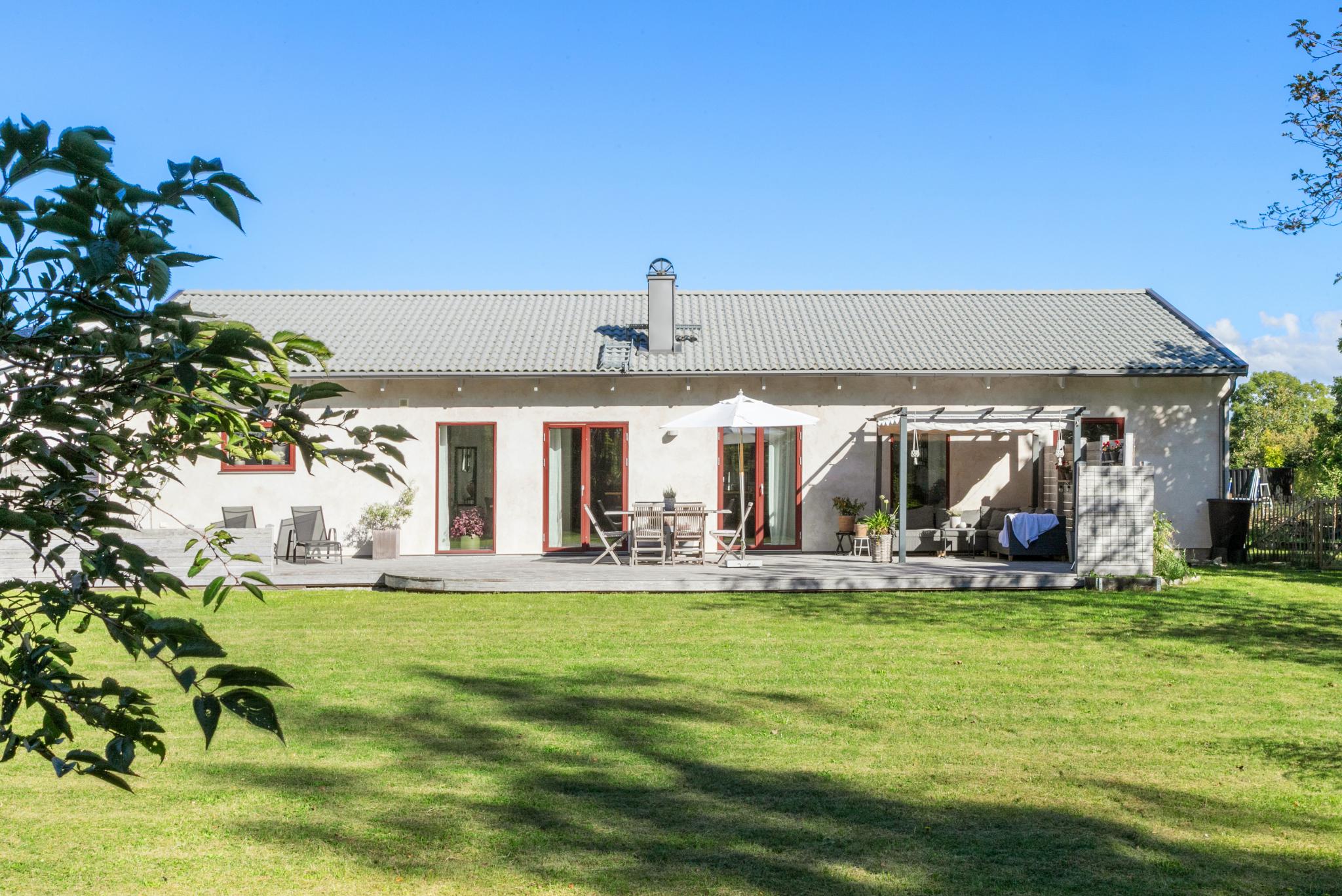 Välkommen till ett mycket trevligt hus med många fördelar. Huset har en tilltalande öppen planlösning med kök och allrum som bjuder in till både umgänge och avkoppling. Rummet har ryggåstak med 3,60 m till nock vilket ger en skön och luftig känsla. Alla rum har vattenburen golvvärme, smakfulla färgval och fönsterbänkar av gotländsk kalksten. Putsade väggar och klinkergolv i alla rum utom sovrummen som har ekgolv. Belysning i form av dimbara spotlights och dessutom minispotlights i alla fönster gör det extra trivsamt. Modernt med ljusstyrning från Plejd via app i mobilen och förberett för högtalare i taket i allrummet.