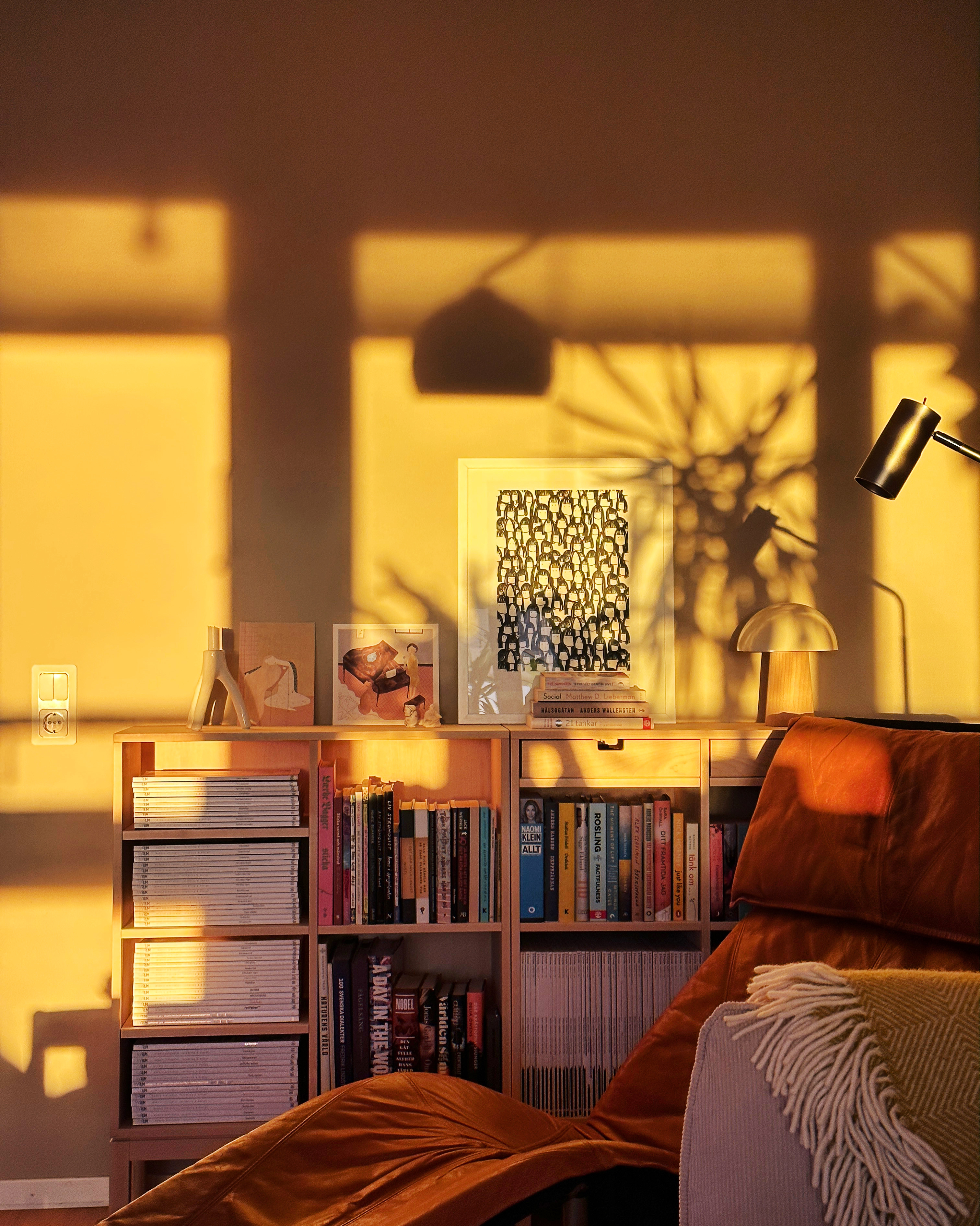 Behagligt kvällssken i läshörnan
