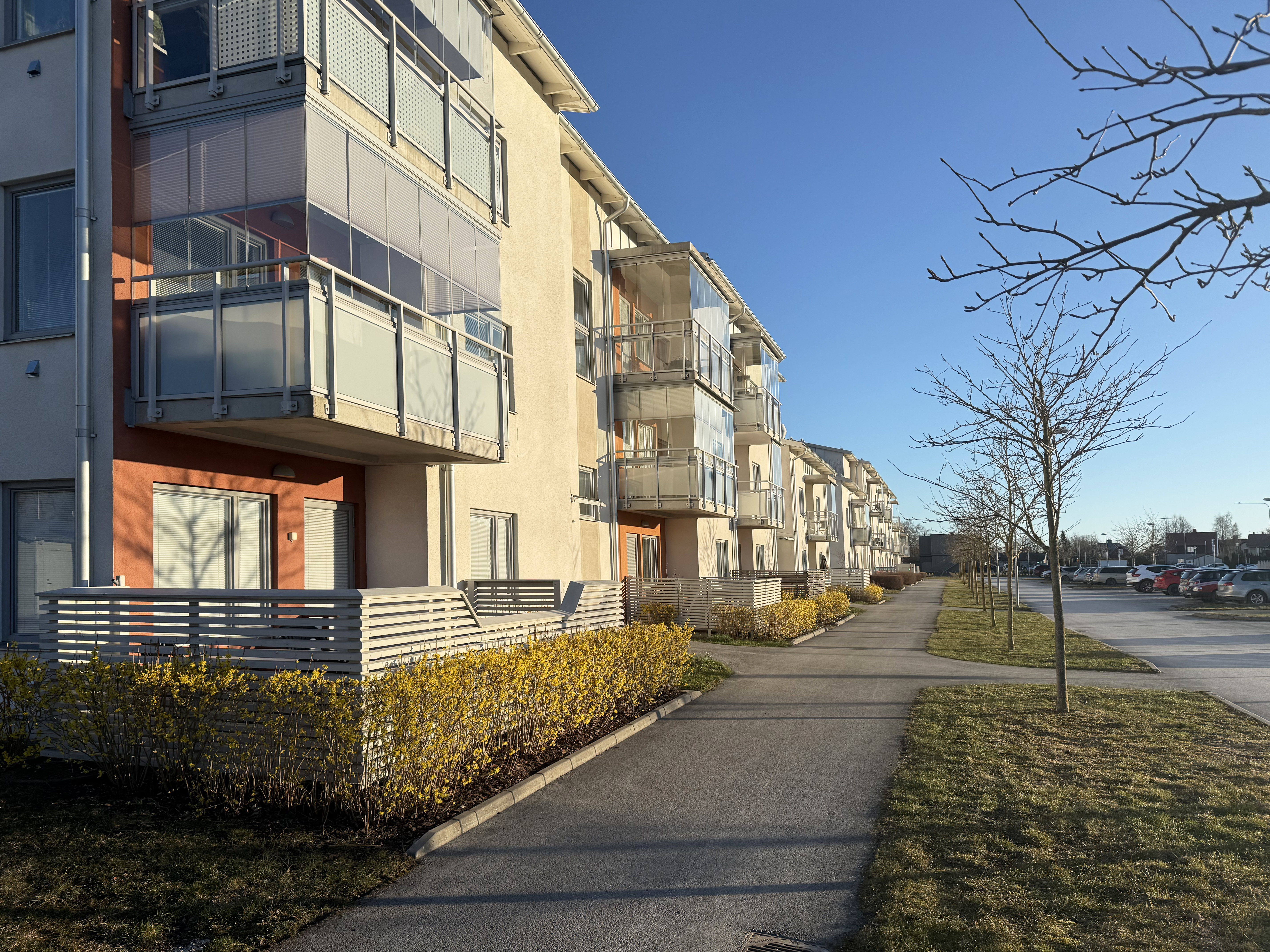 Nu har du möjlighet att köpa en 3-rumslägenhet i fint skick och med utmärkt läge i centrala Visby. Lägenheten är smakfullt färgsatt och har genomgående vackert ekparkettgolv i samtliga rum. Här finns två inglasade balkonger varav den stora balkongen ligger med solvänligt läge mot väst. Helkaklat badrum med tvättmaskin och torktumlare, två bra sovrum samt ett rejält förråd/klädkammare. Toppenfint, modernt och smakfullt kök som byggdes om 2020 för att få bättre skåp- och bänkutrymme. Vitvaror har uppgraderats och köket har en bra matplats vid fönster mot öst. Här bor du bekvämt i lägenhet med hiss, bra kvalité på inredning och material samt med kort promenadavstånd till centrum och Visby innerstad. Förskoleverksamhet och skolor för alla åldrar finns också på nära håll. Väl fungerande förening med byggår 2013 där Telia Triple Play ingår i månadsavgiften.