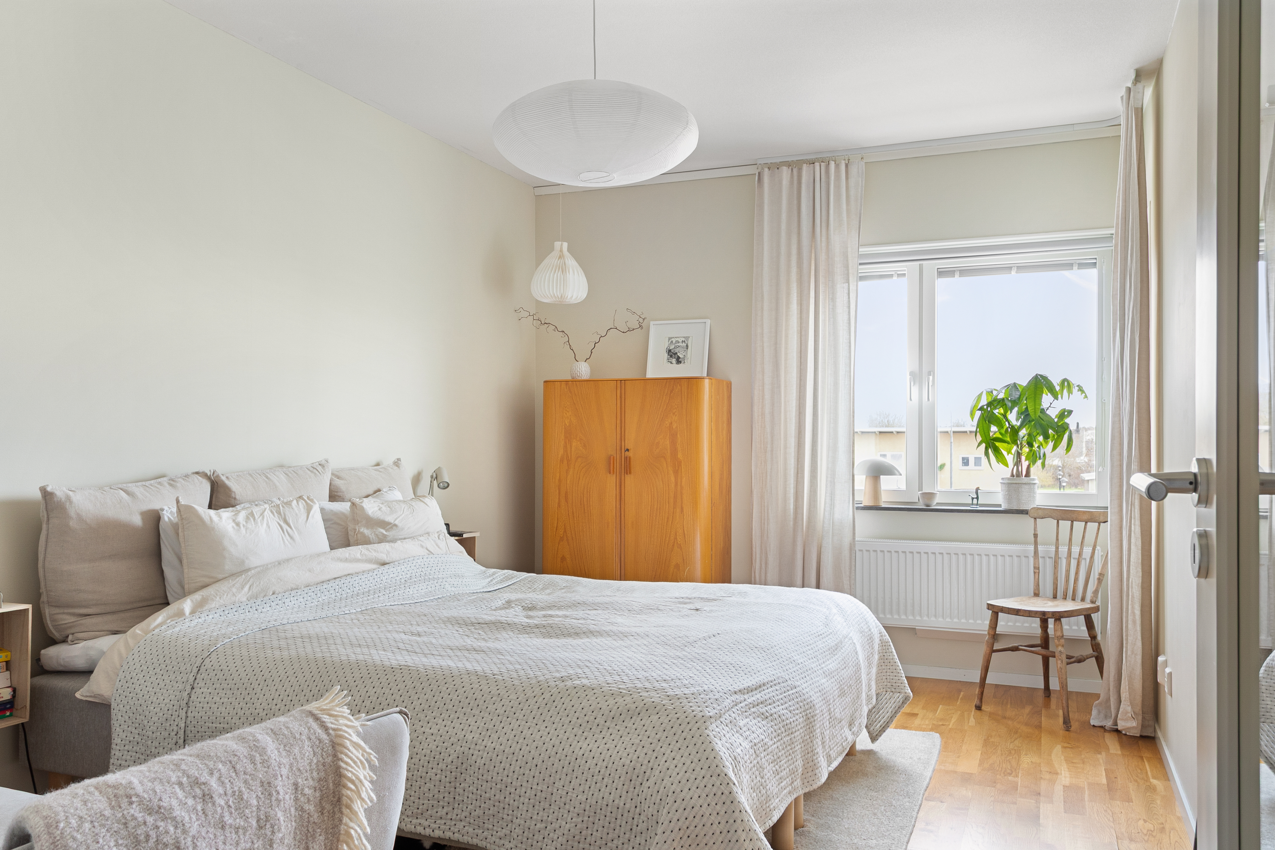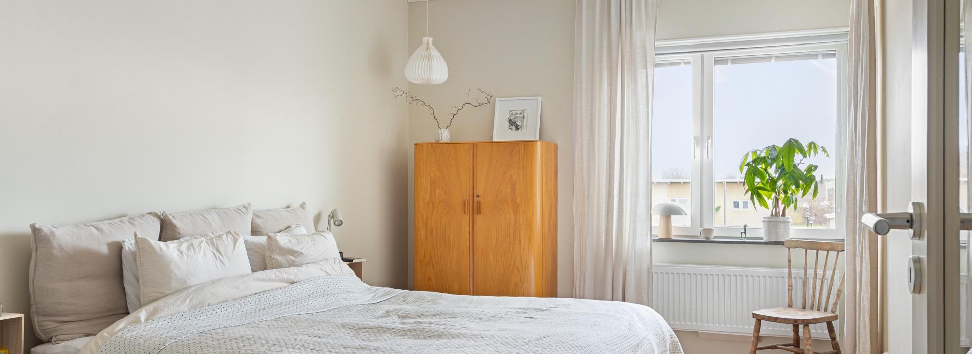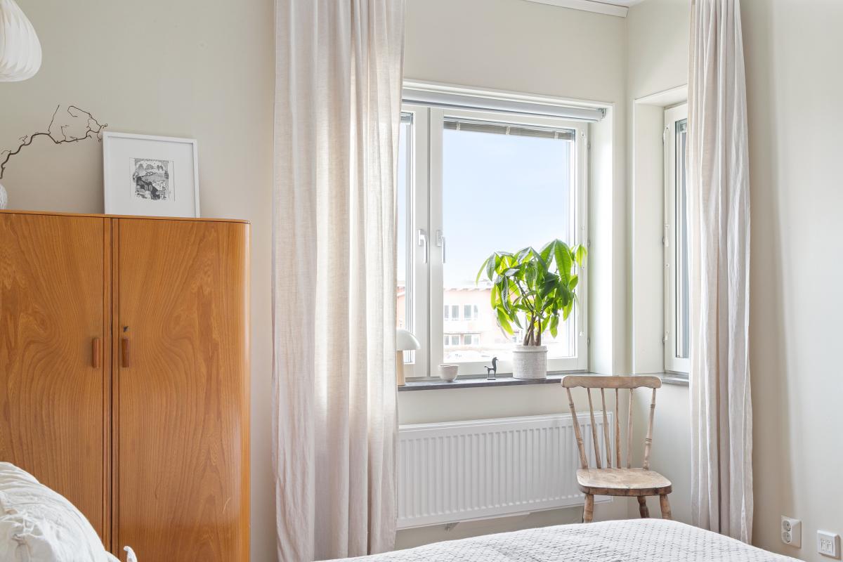Sovrummet har fönster i två väderstreck