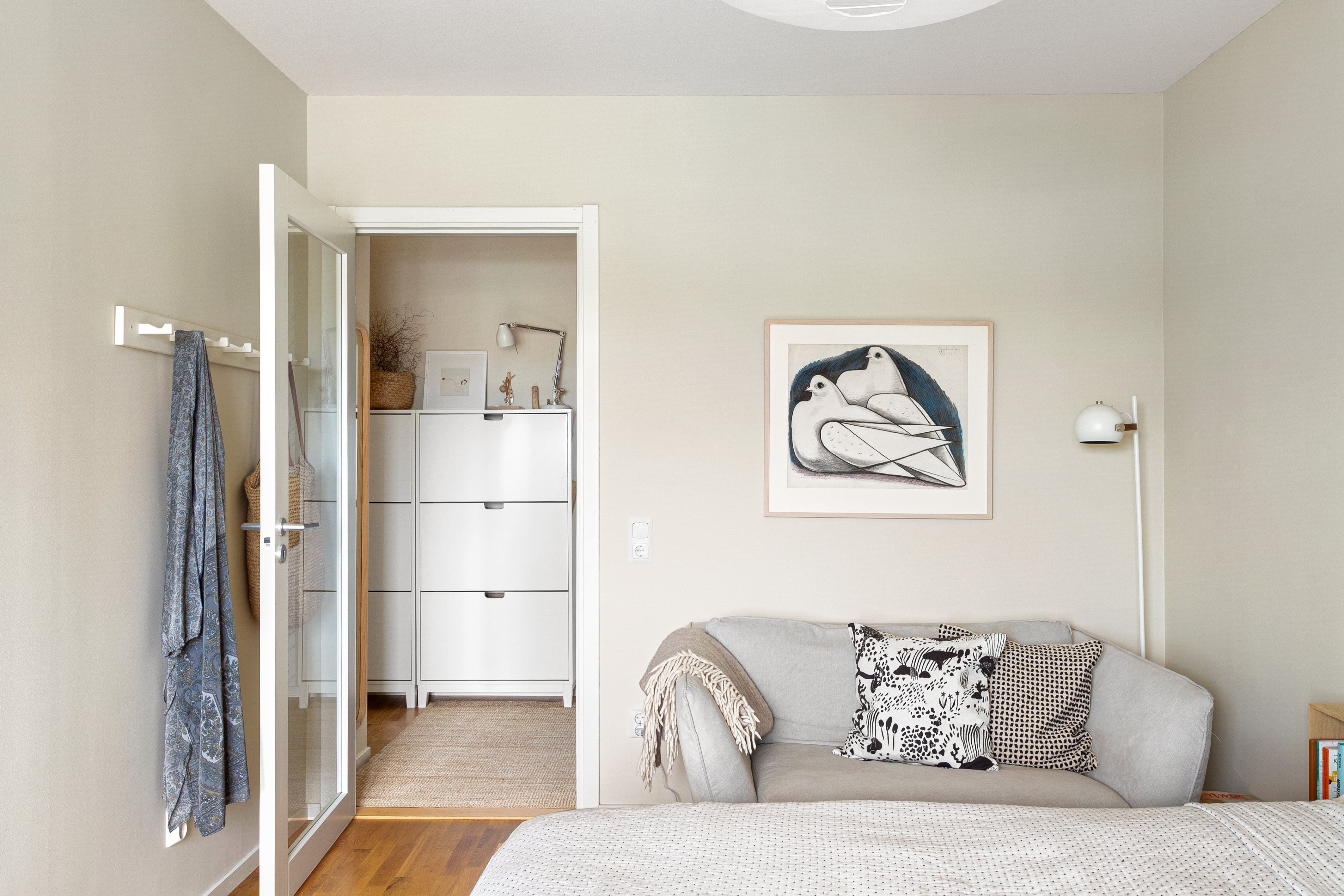 Mot hallen (soffa där plats för garderober finns)