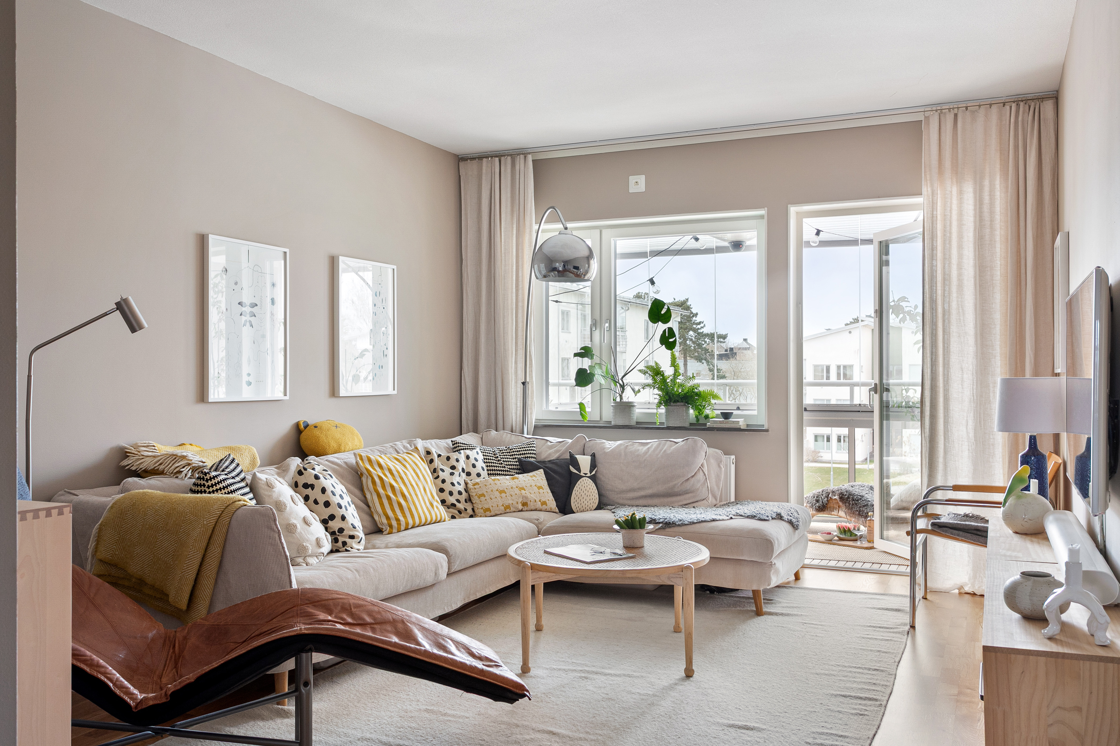 Vardagsrum med utgång till balkong