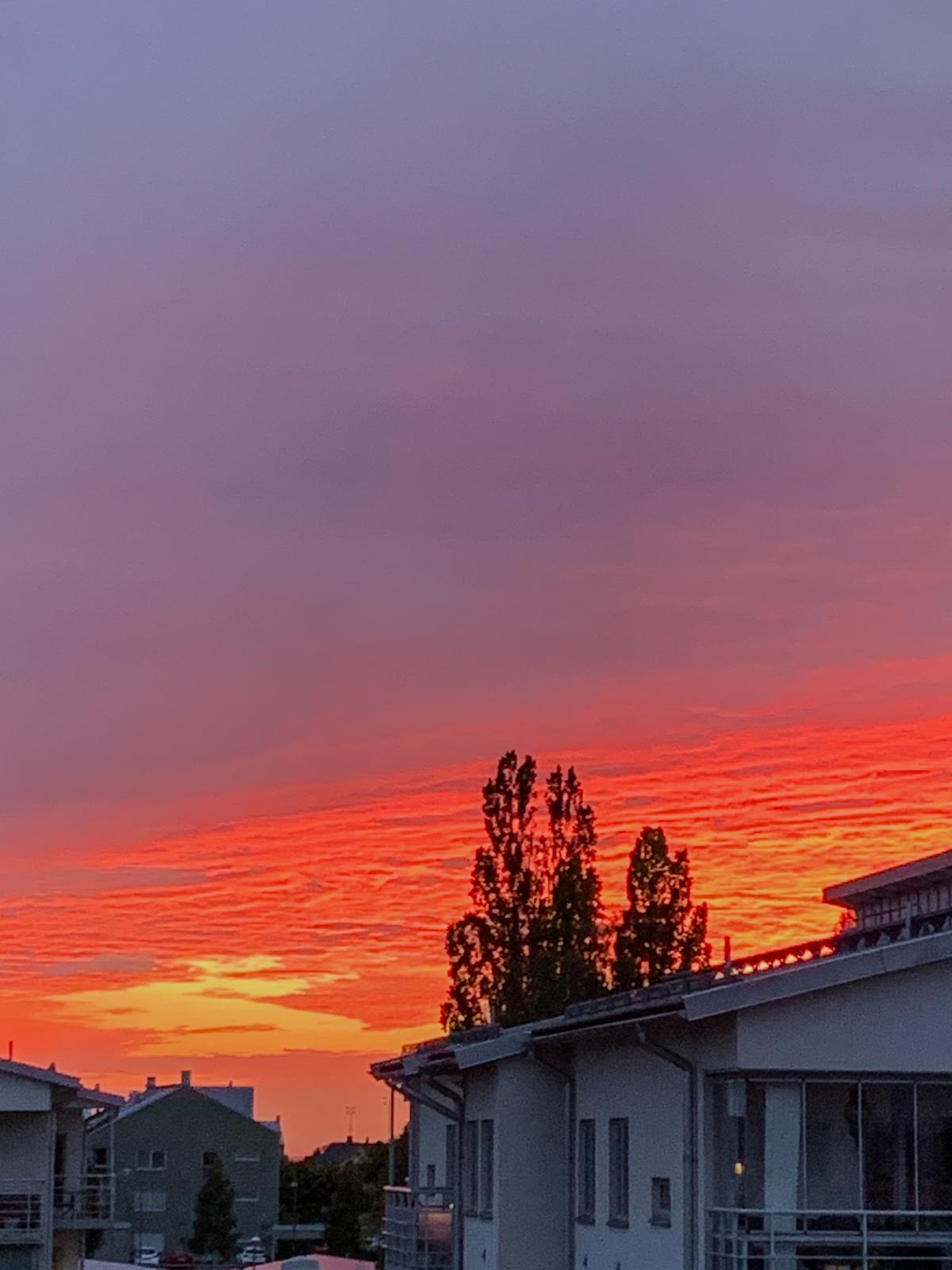 Lägenheten har två inglasade balkonger. Här den östra i soluppgång