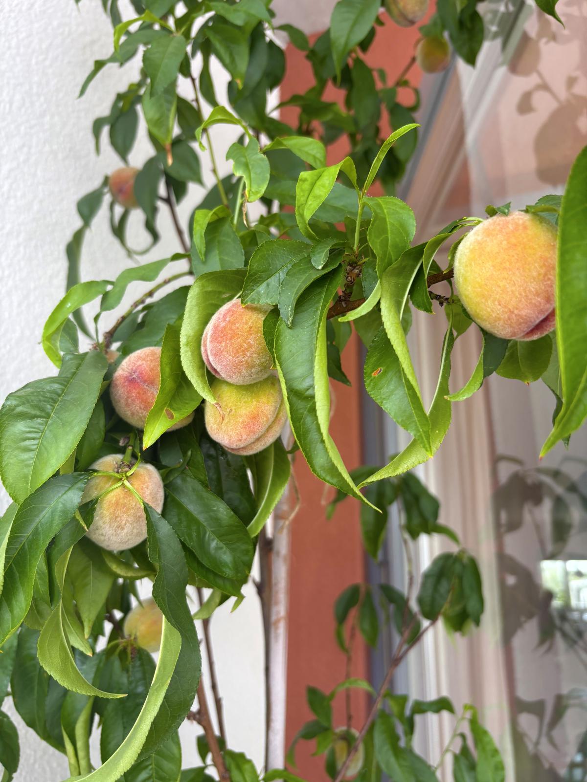 Persikoträdet trivs och ger frukt på balkongen