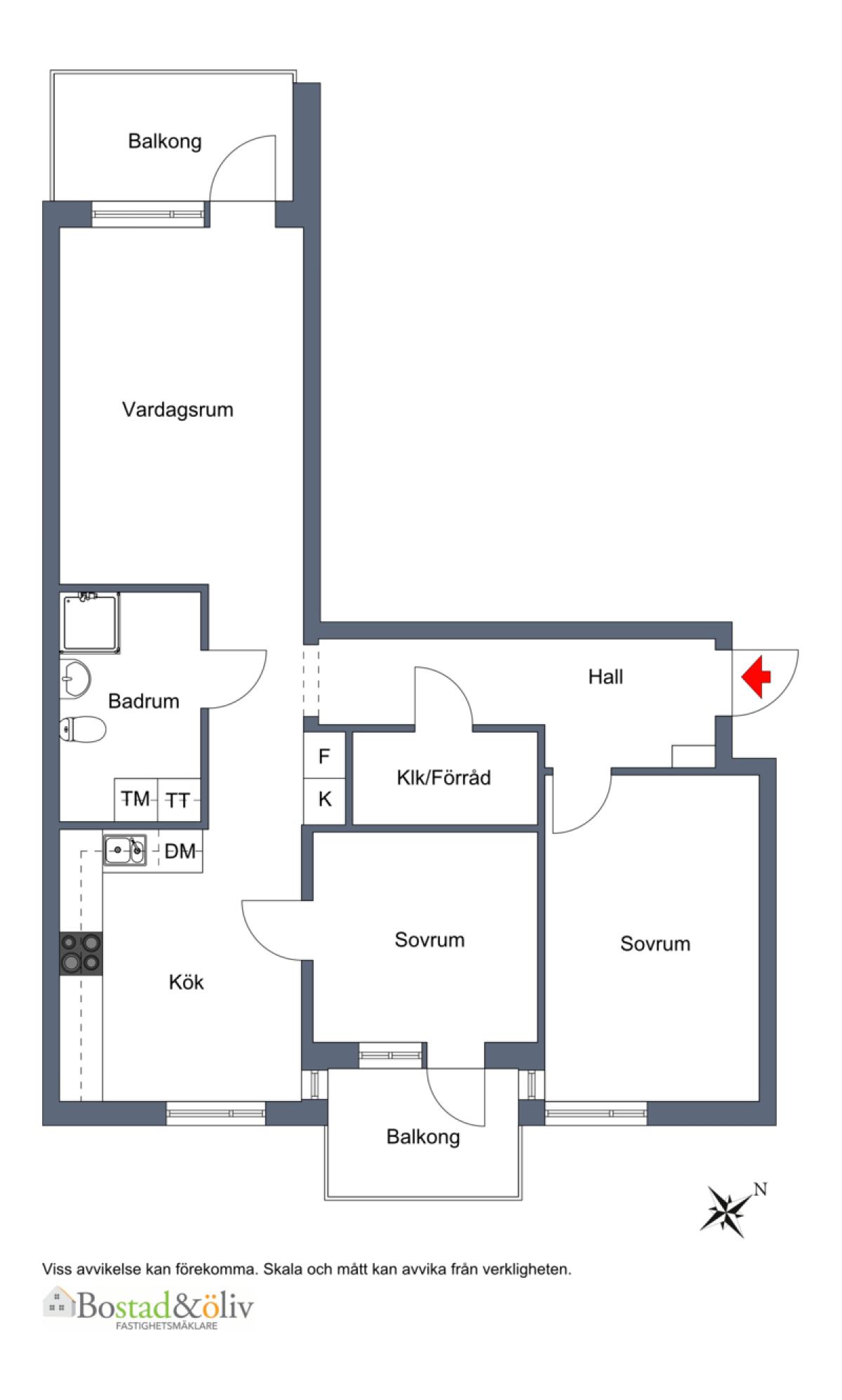 Samtliga areauppgifter är hämtade från bostadsrättsföreningen eller baserade på säljarens information. Dessa uppgifter kan av olika anledningar vara fel. Den köpare som tycker att arean har betydelse för köpet bör därför vidta en uppmätning.