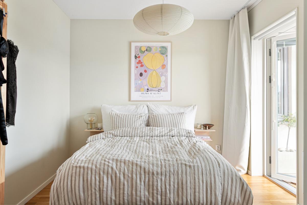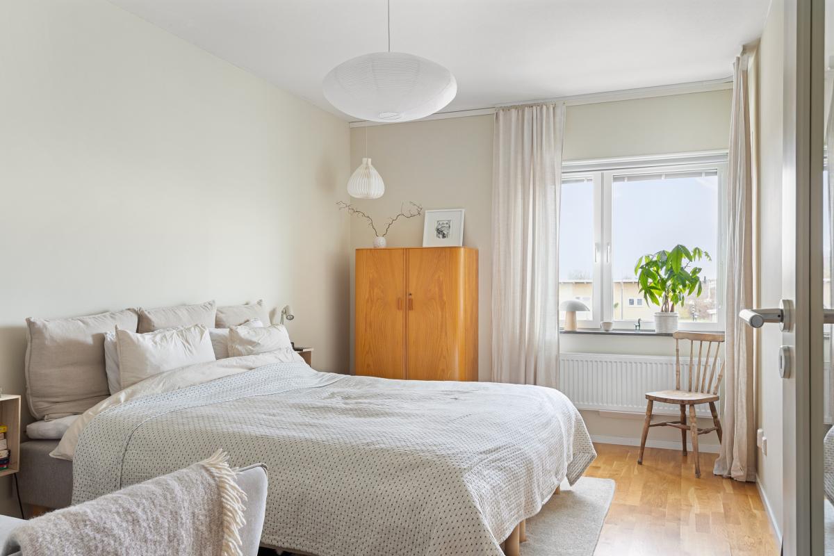 Lägenhetens andra sovrum har både ett fönster och utgång till den inglasade balkongen mot öster där du ges möjlighet dricka ditt frukostkaffe. Även detta sovrum har plats för nya ägarens önskemål och behov av garderober eller förvaring.