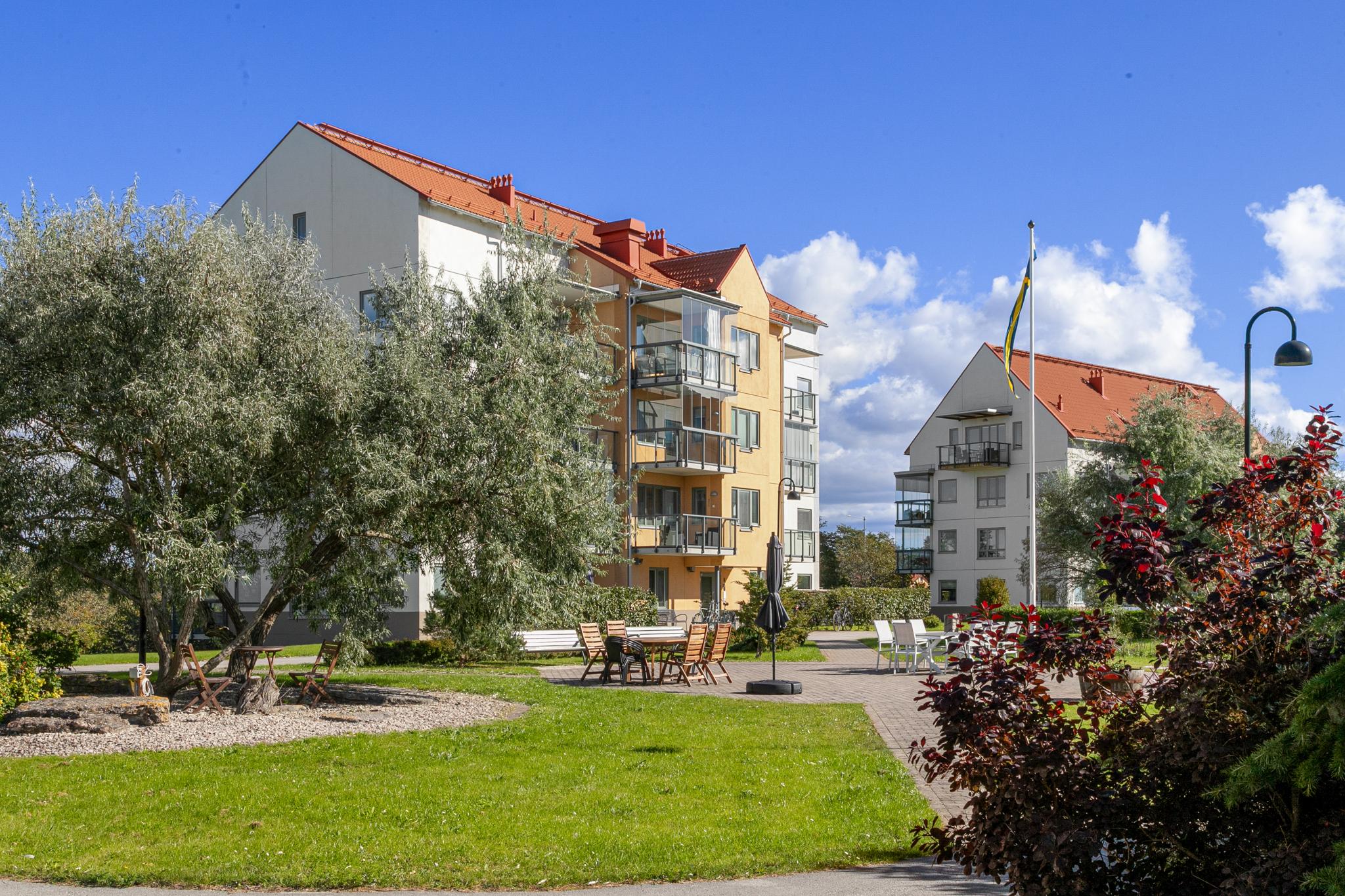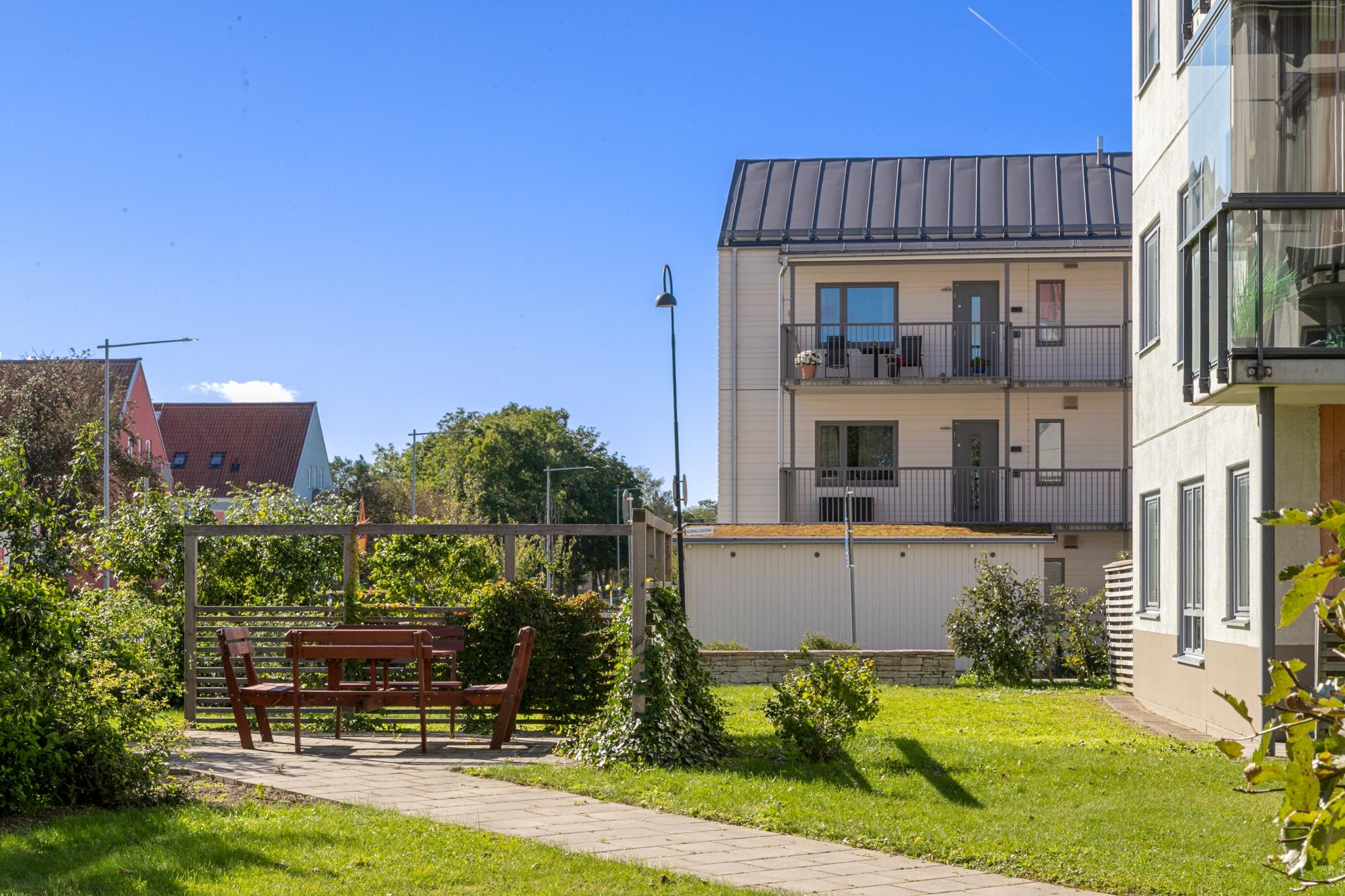 Lägenheten har ett bra läge i norra Visby med förskola, skola och livsmedelsaffär i direkt närhet. Det är en kort promenad till både Östercentrum och Visby Innerstad. Runt knuten ligger Galgberget och naturreservatet Bergbetningen. Här finns härliga promenadstråk i fin natur med vidsträckt utsikt över himmel, hav och solnedgångar.