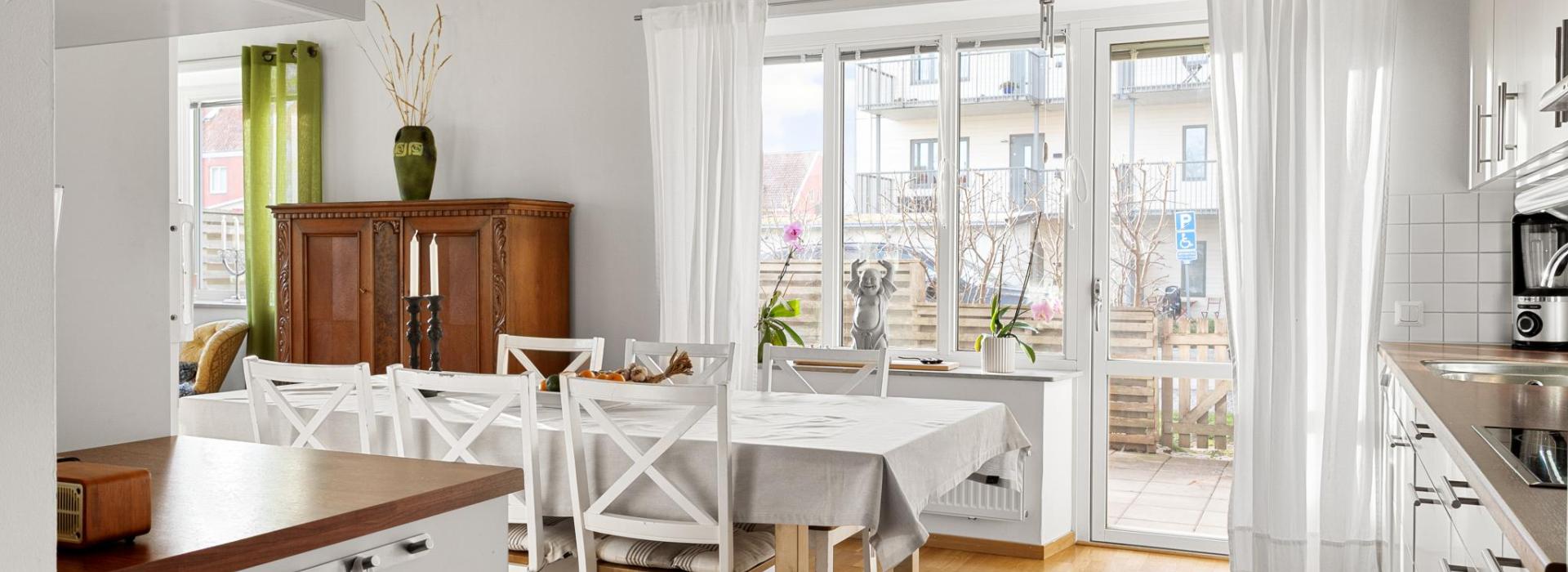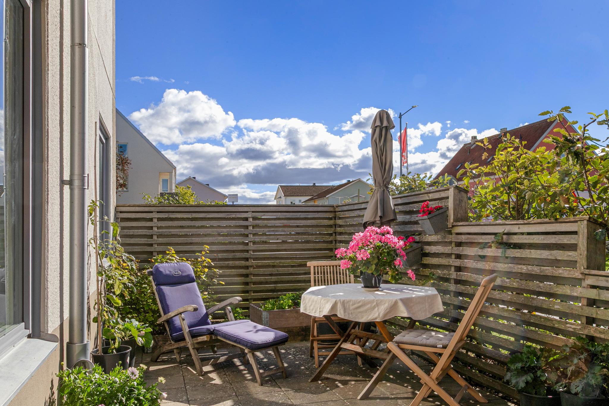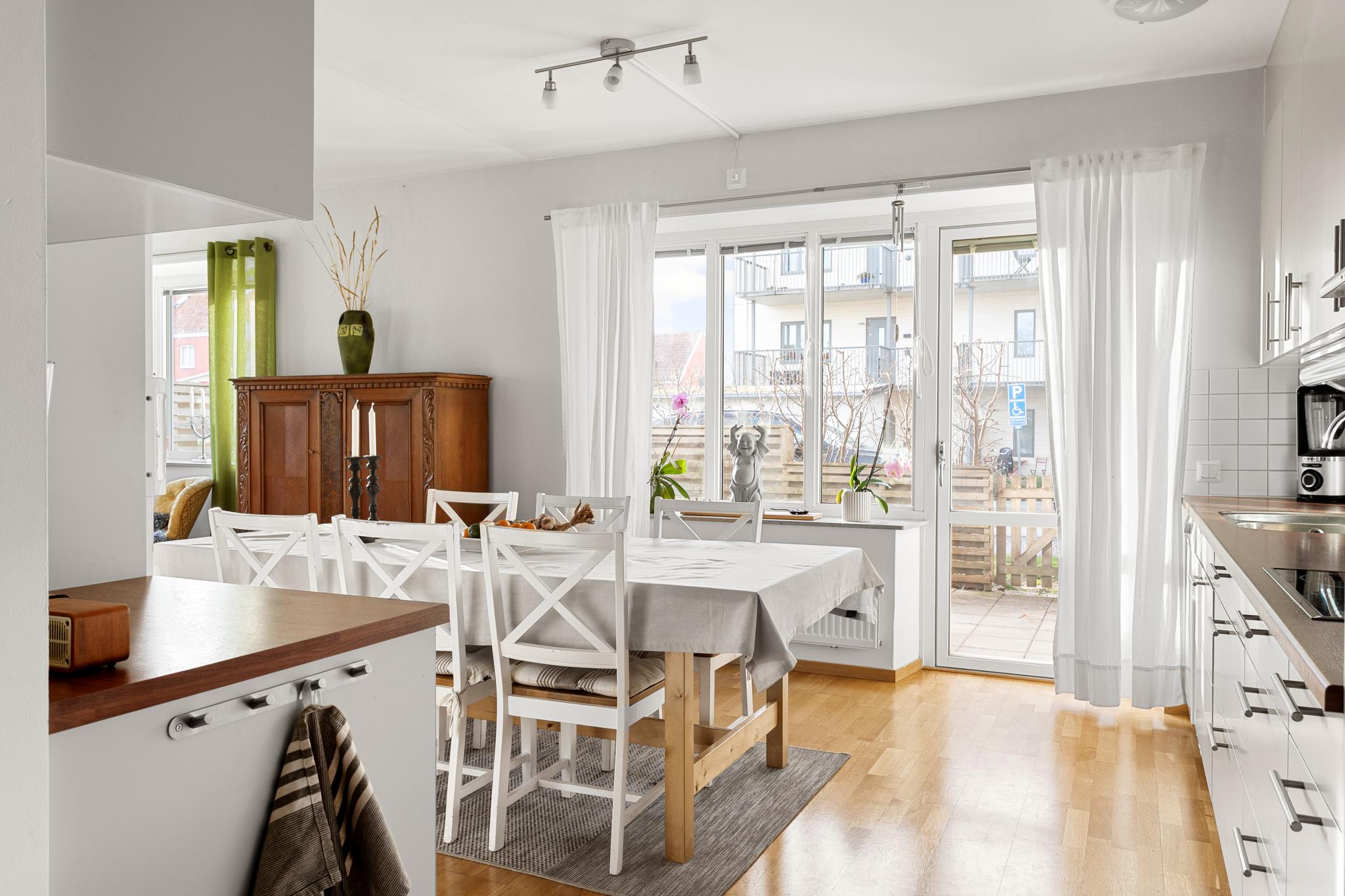 Mycket trivsam gavellägenhet i markplan med två härliga uteplatser som erbjuder sol från morgon till kväll. Bostaden är fin med generöst ljusinsläpp tack vare stora fönster i tre väderstreck. Kök och vardagsrum har trevlig öppen planlösning. Det stilrena köket har gott om plats för både familj och vänner och blir en naturlig samlingspunkt i hemmet. Lägenheten rymmer tre sovrum i bra storlek och två helkaklade badrum med golvvärme. Planlösningen är väl genomtänkt med goda förvaringsmöjligheter och dessutom finns ett stort vindsförråd som nås smidigt via hiss. Här bor du bekvämt med närhet till mataffär, Östercentrum och innerstan, samtidigt som du har vackra promenadstråk runt knuten med utsikt över havet och magiska solnedgångar.