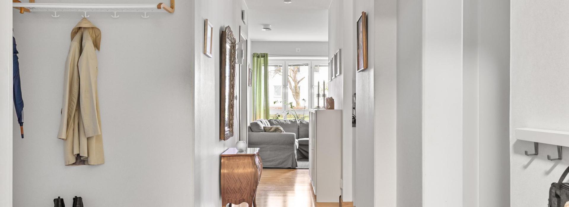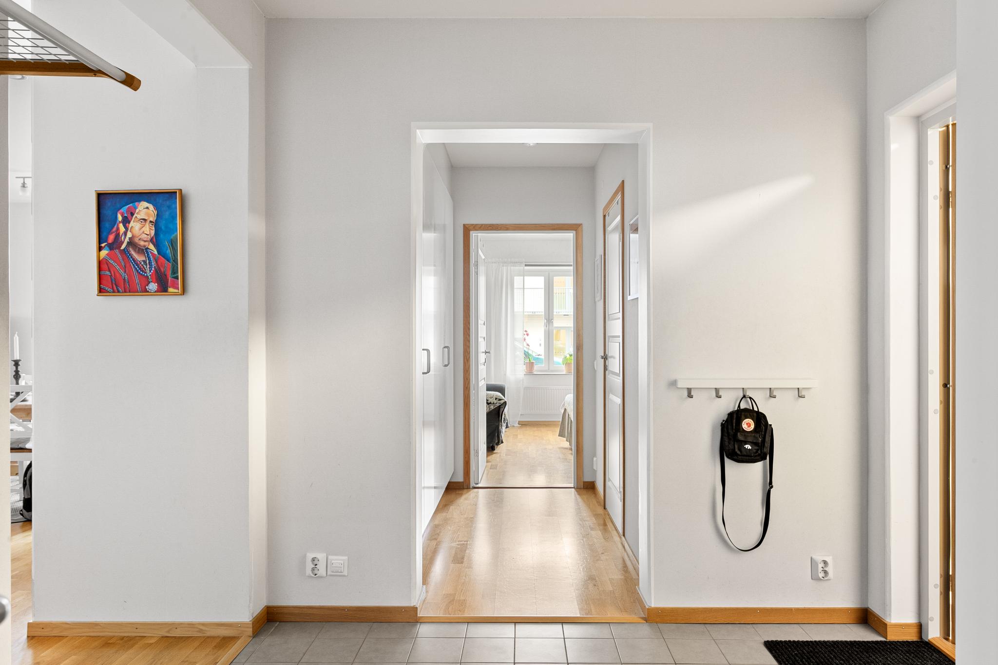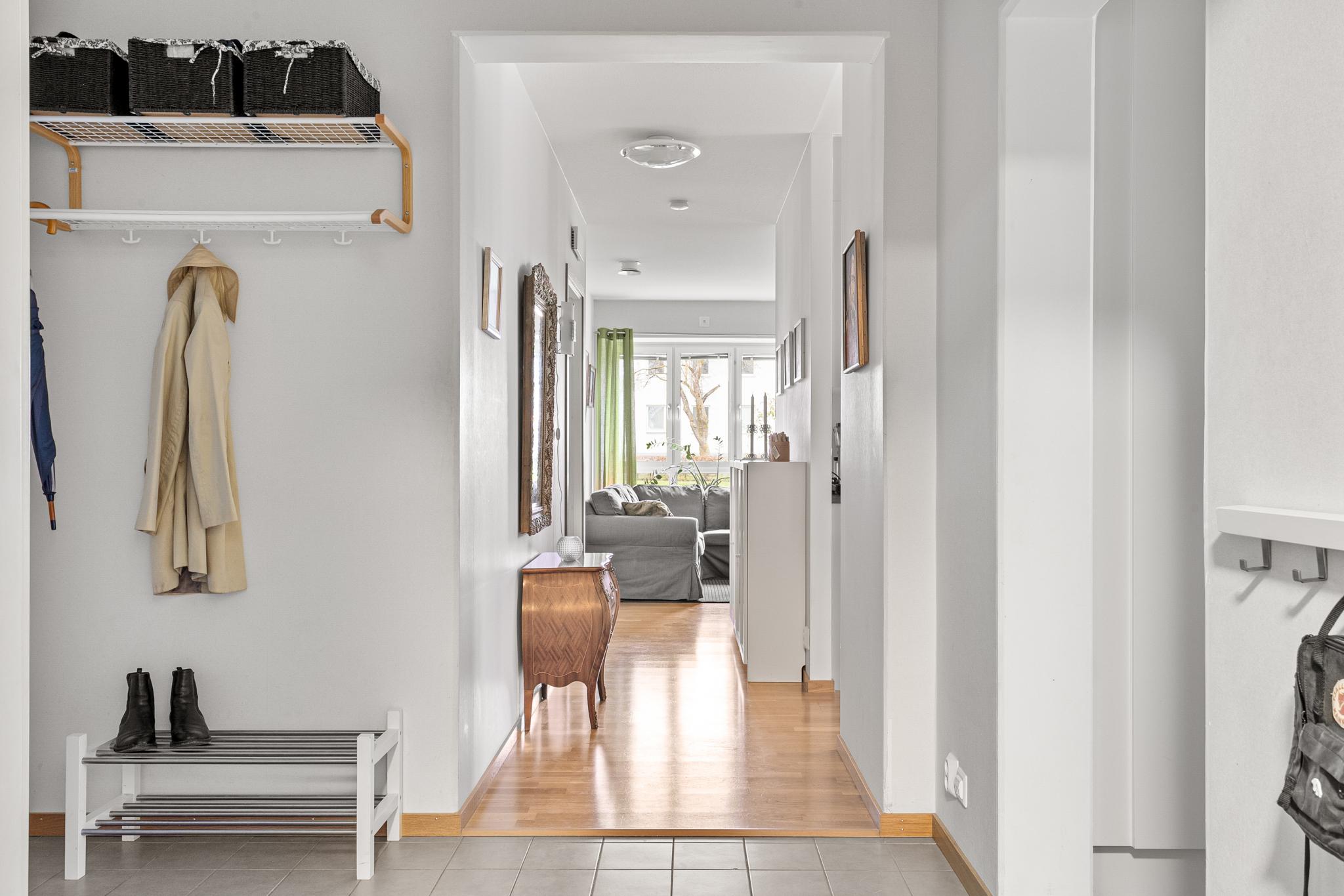 Rymlig entré/hall med hatthylla samt garderob, skåp och städskåp. Här finns även ett skåp för installationer. Till höger finns ytterligare plats för förvaring i dubbelgarderob, skåp och garderob.