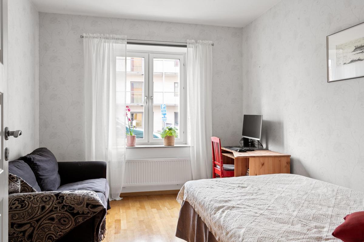 Välkommen till en välplanerad lägenhet med många fördelar. Hela lägenheten har vita spegeldörrar, fönsterbänkar av kalksten och fint ekparkettgolv utom hallen som har klinkergolv. Även lister och foder är av ek.