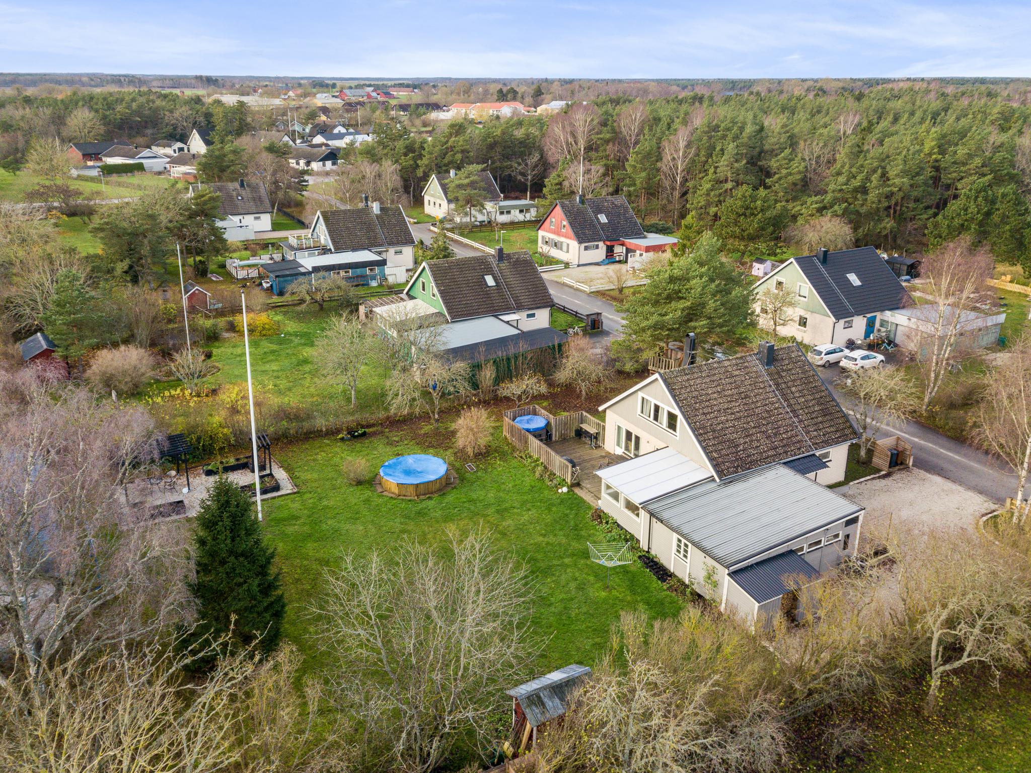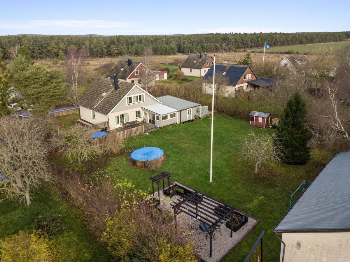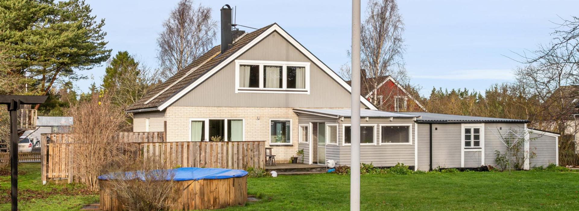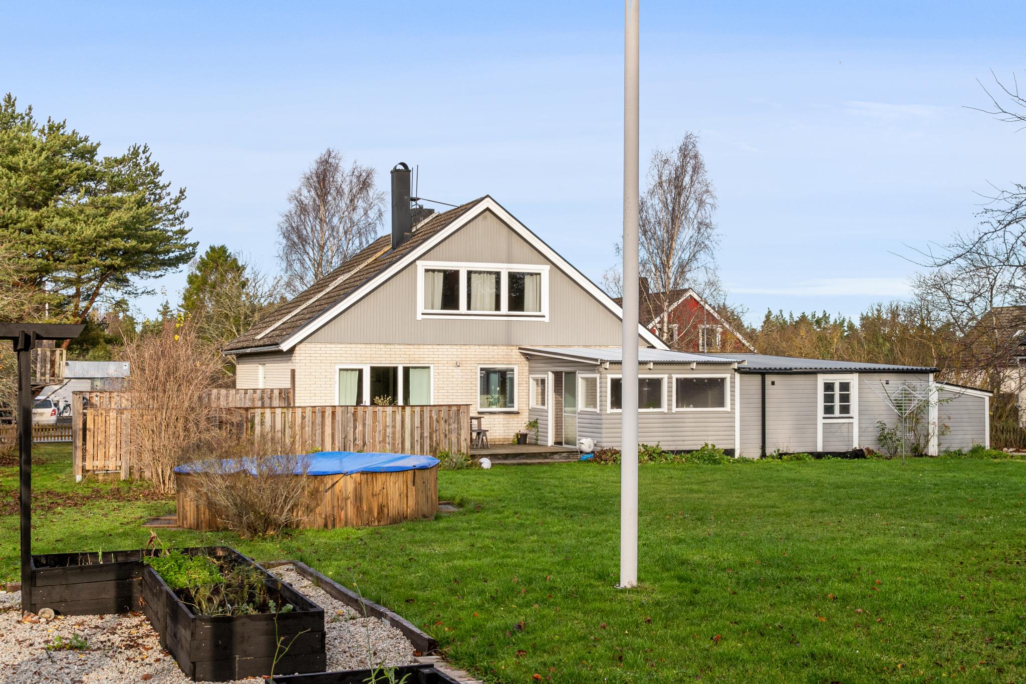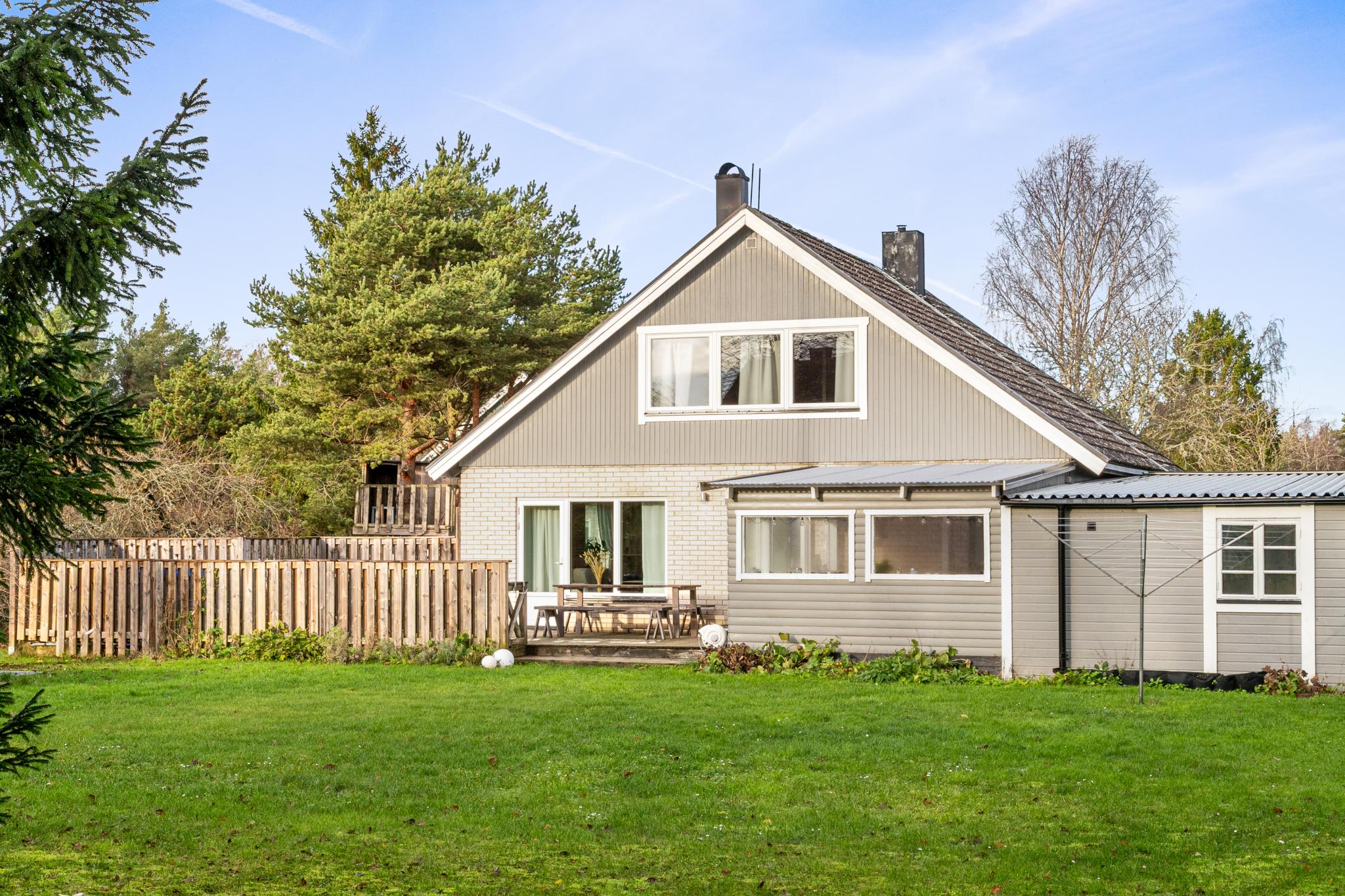 Välkommen till ett boende med plats för den stora familjen, vänner och kamrater. Huset har fem möjliga sovrum och en tomt med insynsskyddat läge, fina gräsytor och sköna uteplatser. Goda möjligheter till egna odlingar i pallkragar vid pergola från 2025. Nuvarande ägare har löpande utfört underhåll, renoveringar och förbättringar under åren de bott i huset. (Se frågelista)