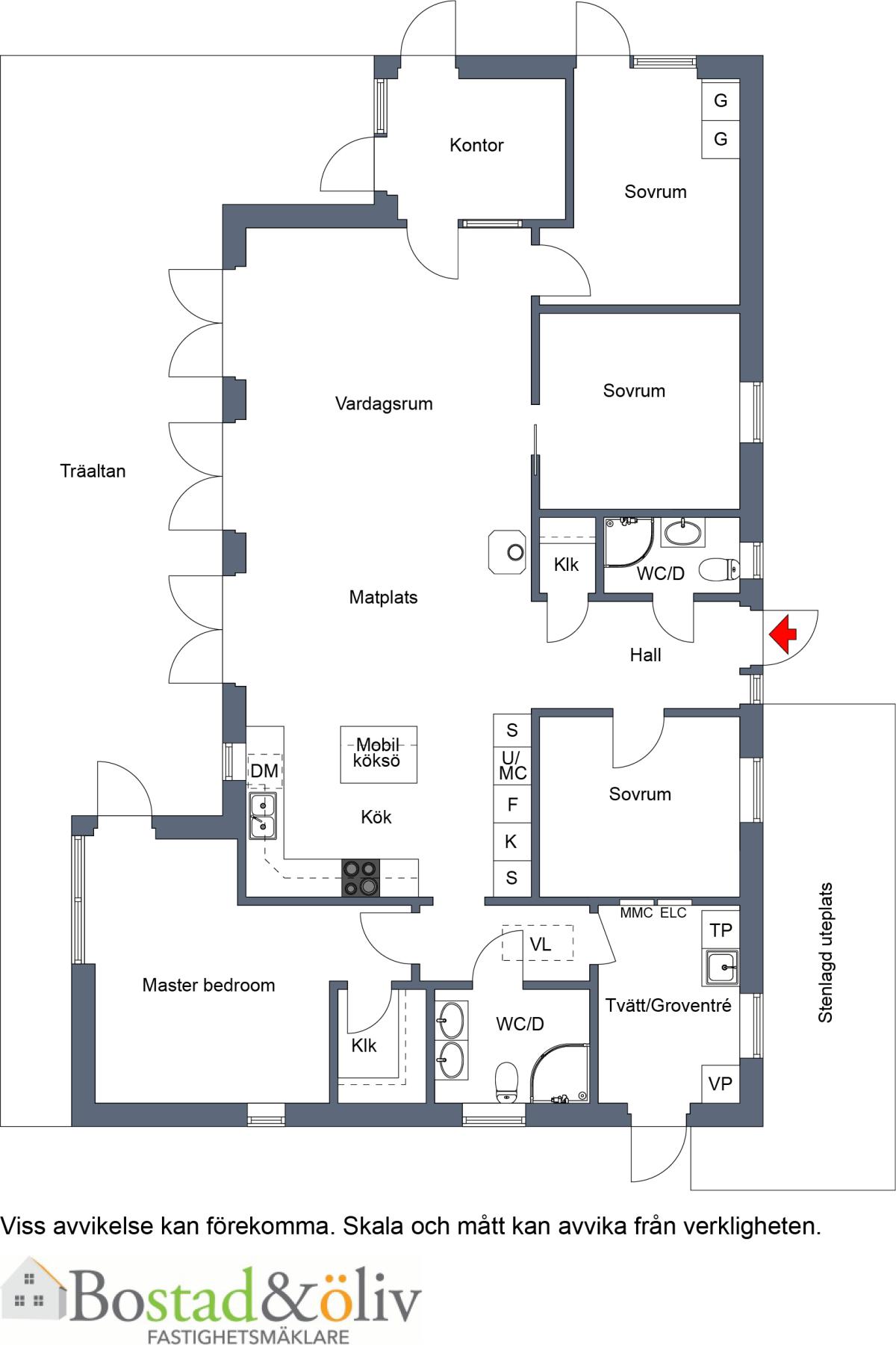 Samtliga areauppgifter är hämtade från fastighetsregistret eller baserade på säljarens information. Dessa uppgifter kan av olika anledningar vara fel. Den köpare som tycker att arean har betydelse för köpet bör därför vidta en uppmätning.