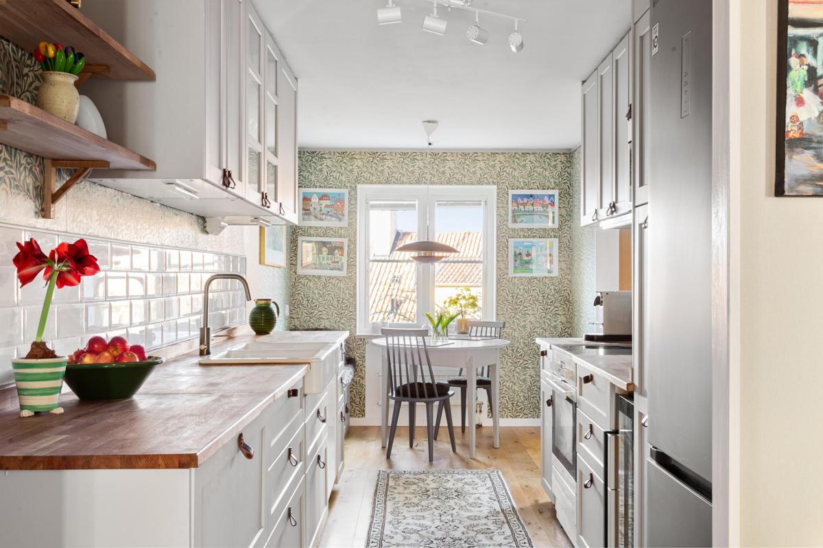 Smakfullt och välplanerat kök från 2024. Modernt utrustat med bl a inbyggd mikro, spis med häll, ugn, fläkt, kombinerad kyl&frys, diskmaskin samt vinkyl. Trivsam matplats vid fönster mot innergården.