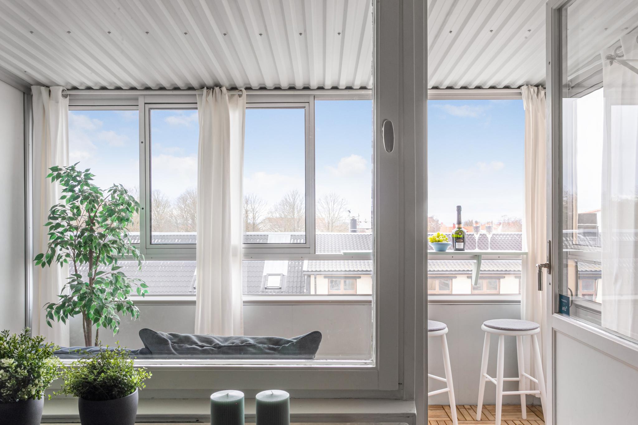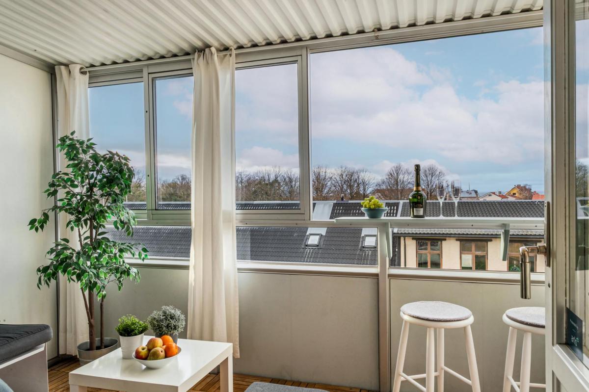 Balkongen är både inglasad och större än vanliga balkonger