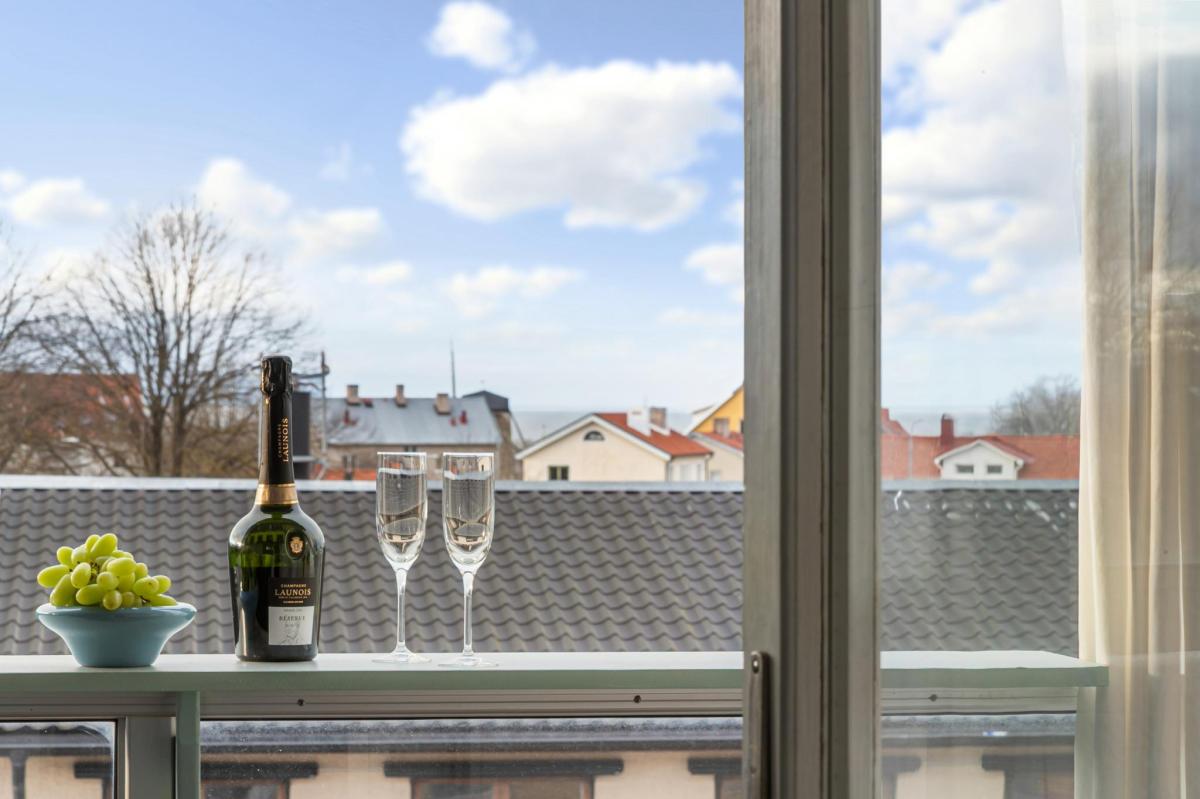 Välkommen till en smakfull och mycket trevlig tvåa i centrala Visby. Lägenheten har fina ytskikt, ekparkettgolv i samtliga rum samt ett modernt och välplanerat kök. Helkaklat badrum från 2021 då även stambyte genomfördes. Behaglig färgsättning och stor balkong mot sydväst där du även har viss havsutsikt.