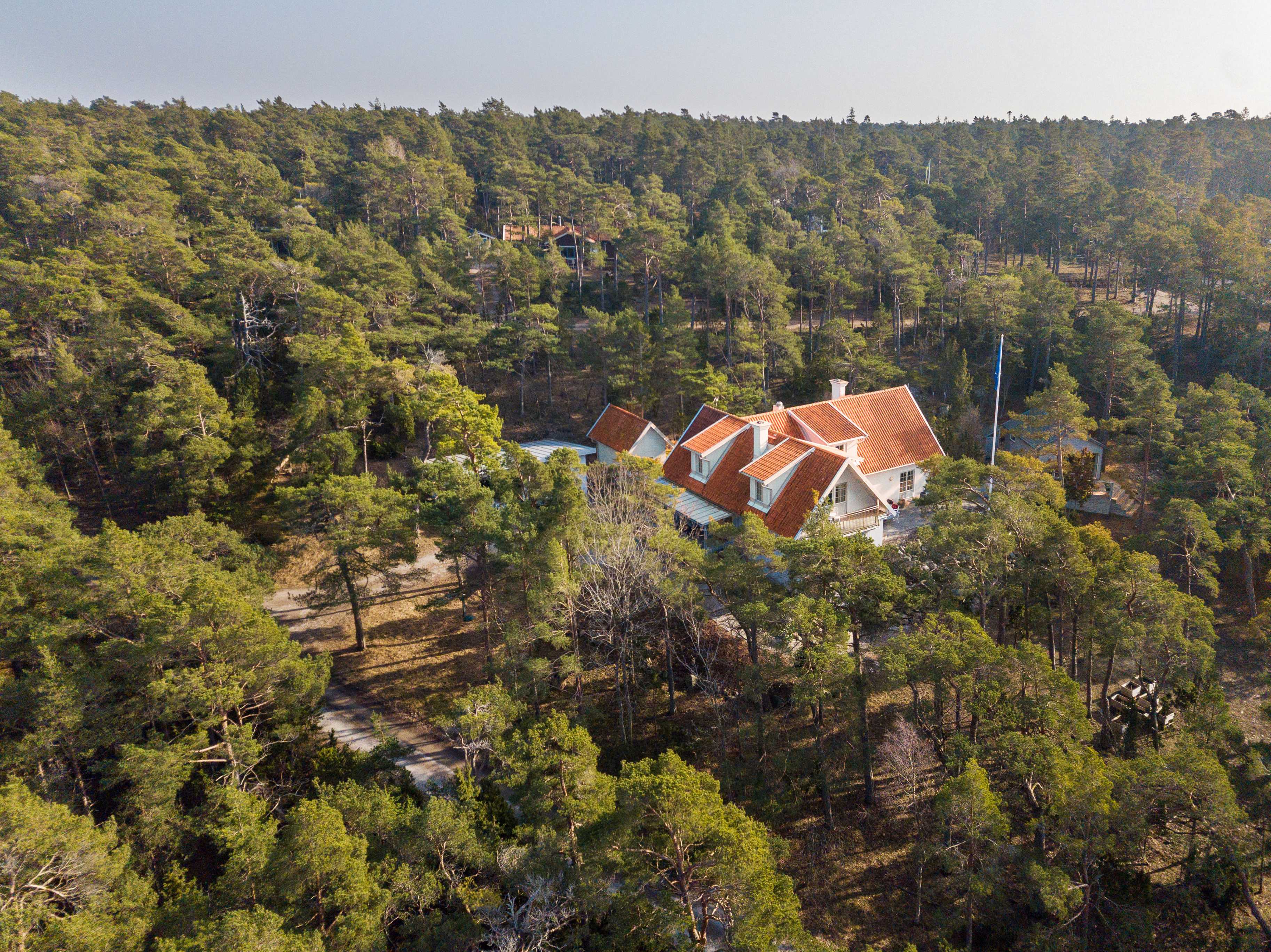 Fastigheten rymmer bostadshus, två gästhus samt carport