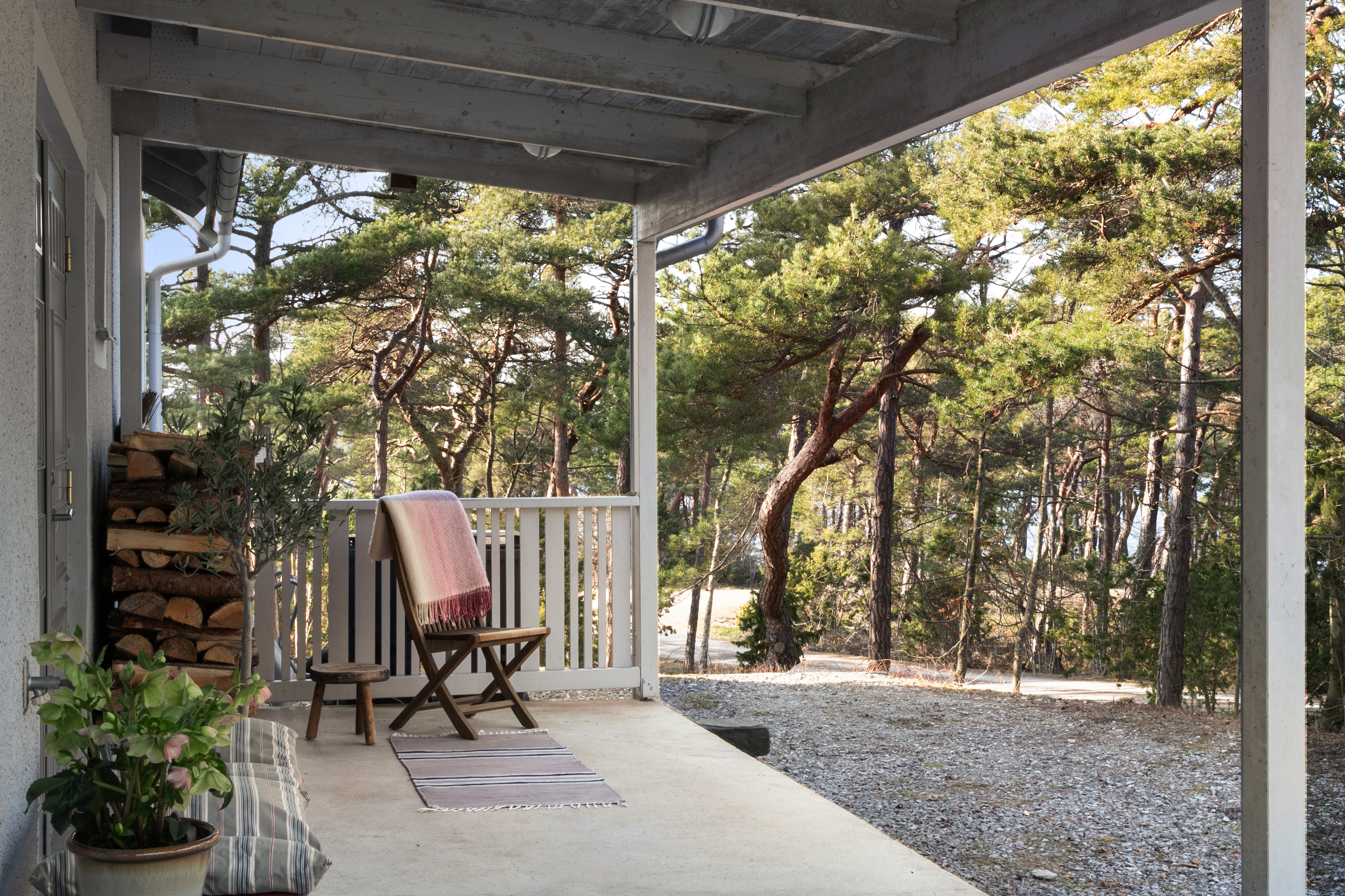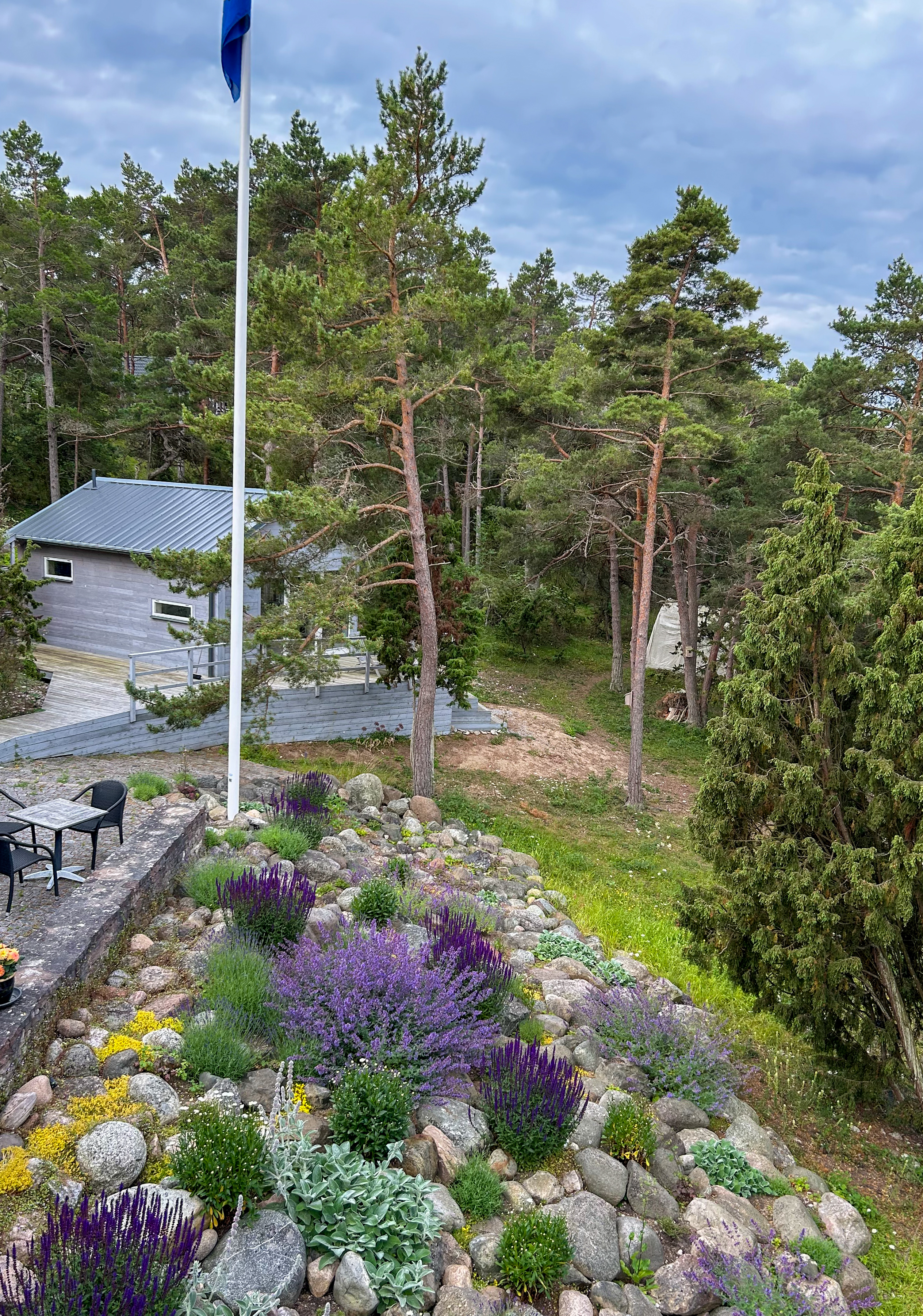 Vy från den stensatta uteplatsen