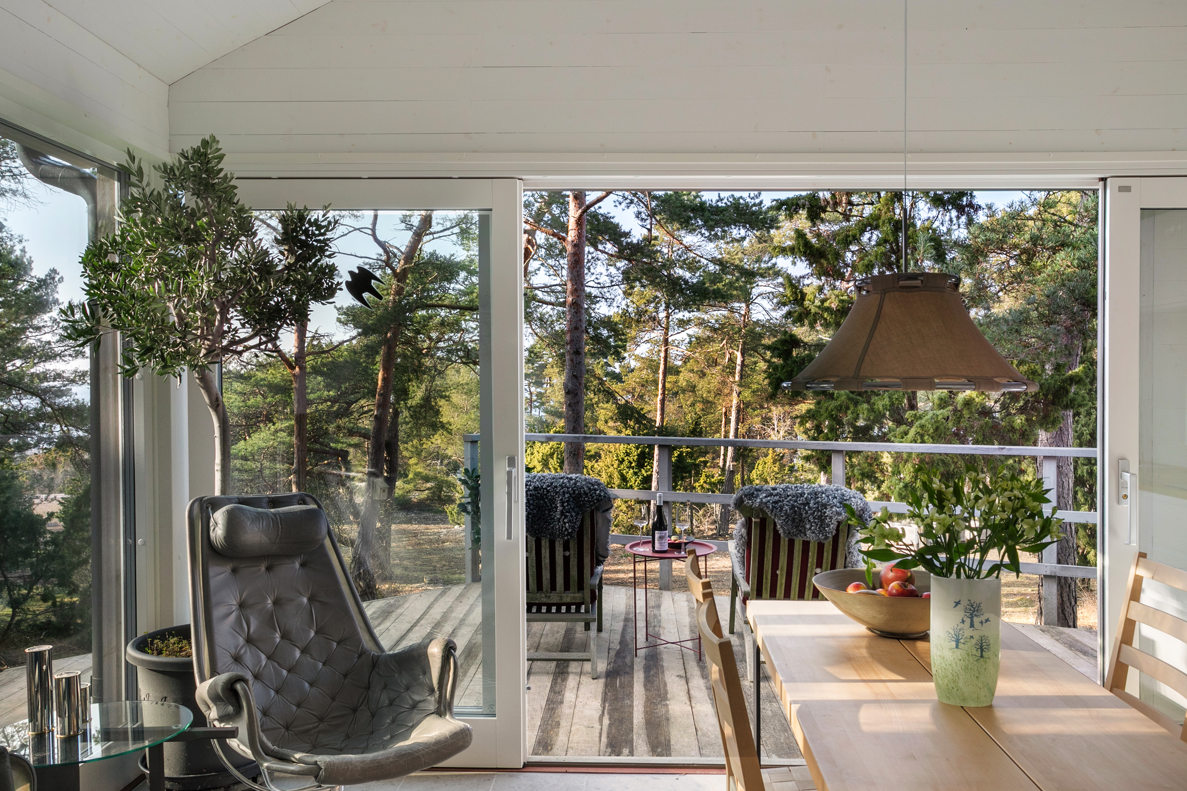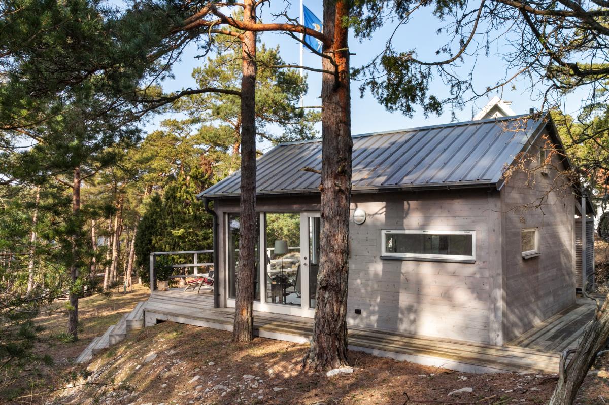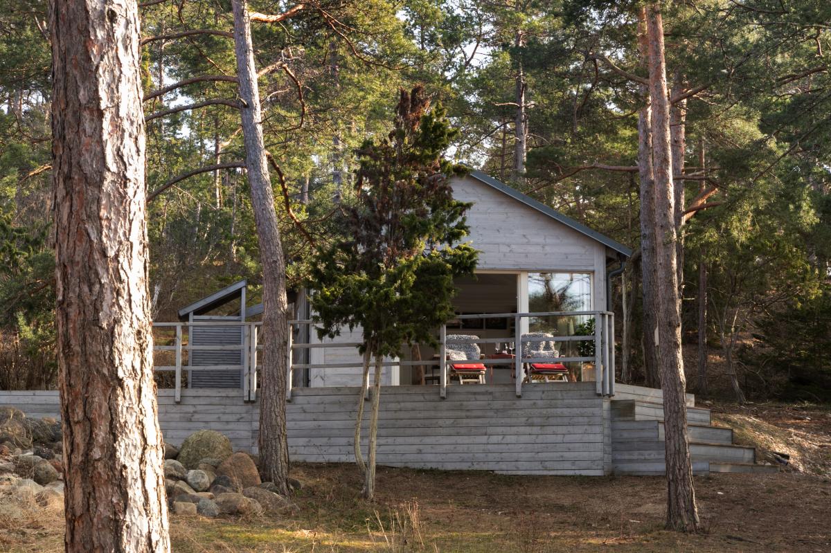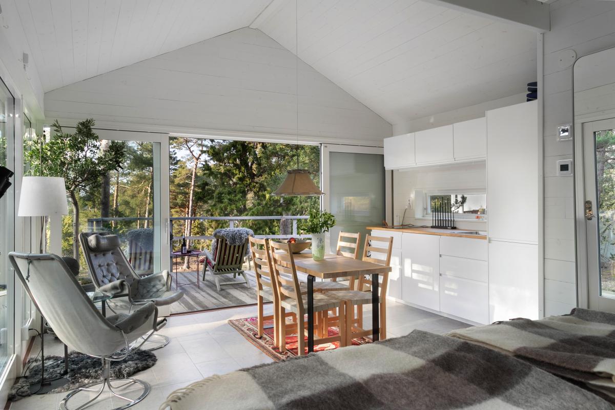gästhuset har stora glaspartier mot havet