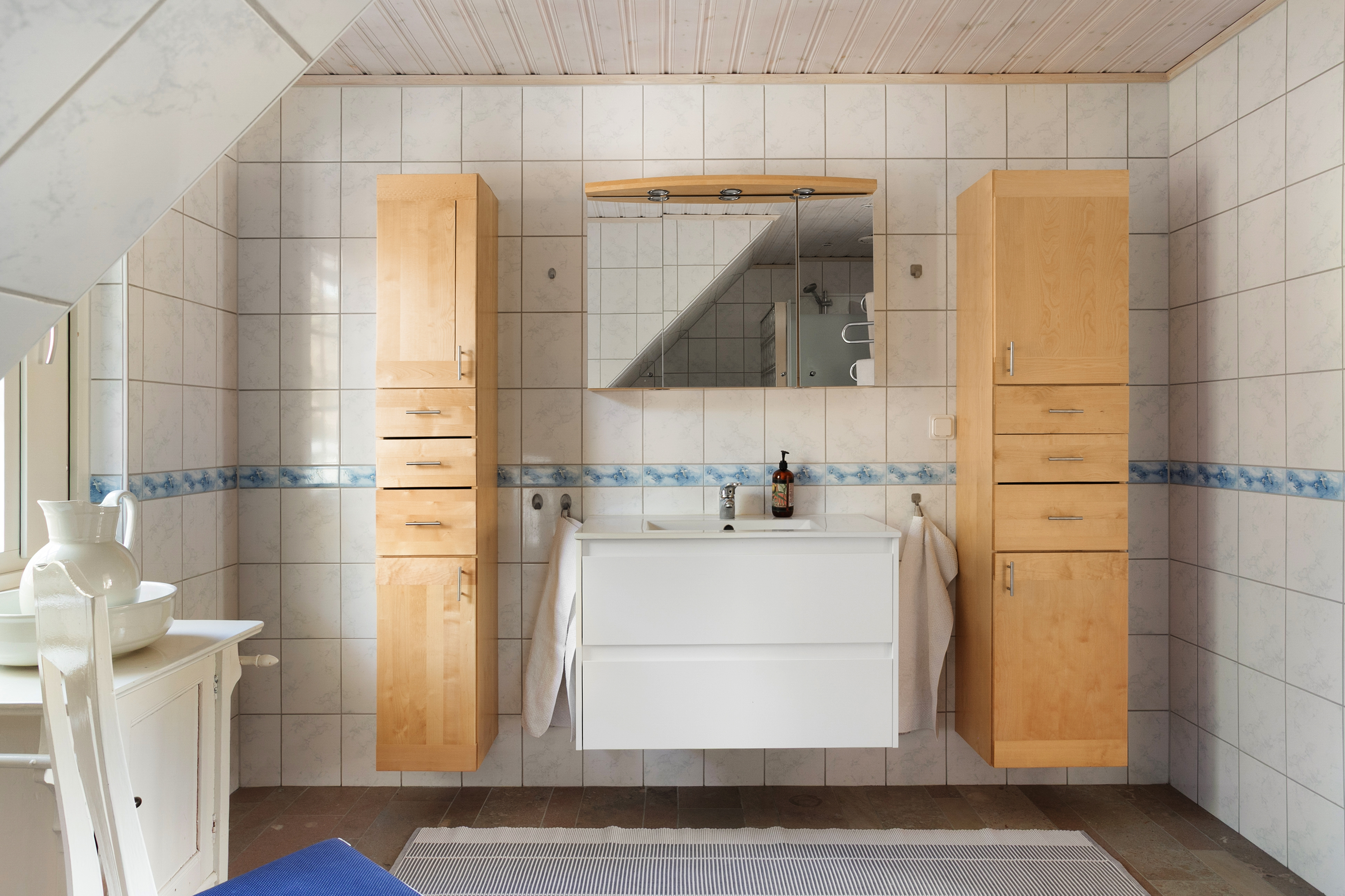 helkaklat badrum även på övervåningen