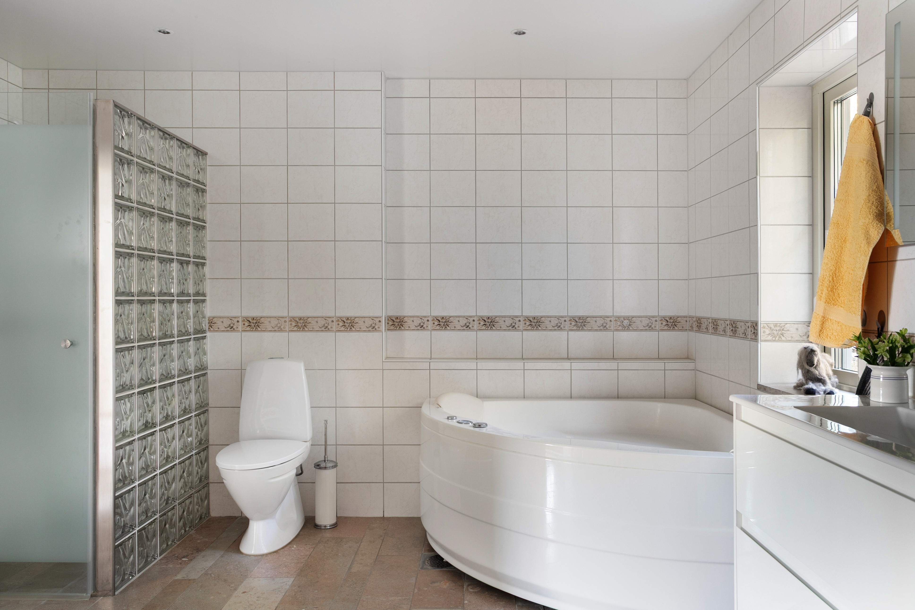 bubbelbadkar och separat duschplats