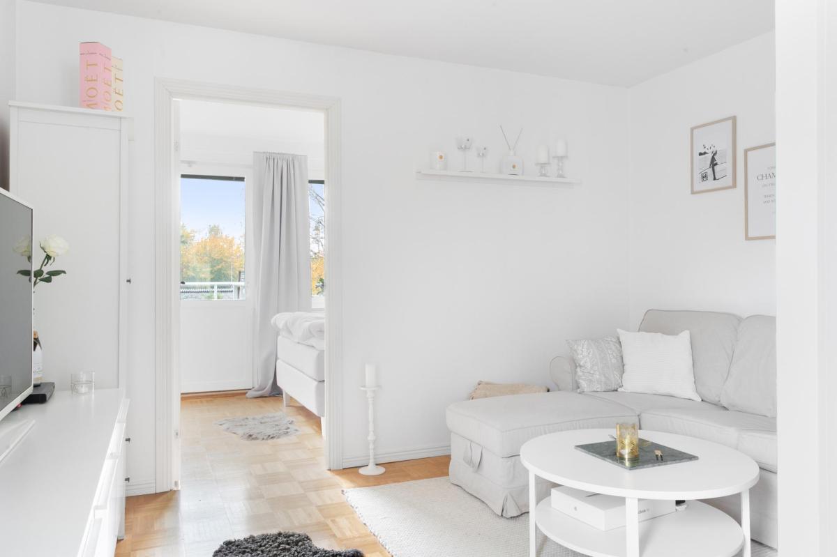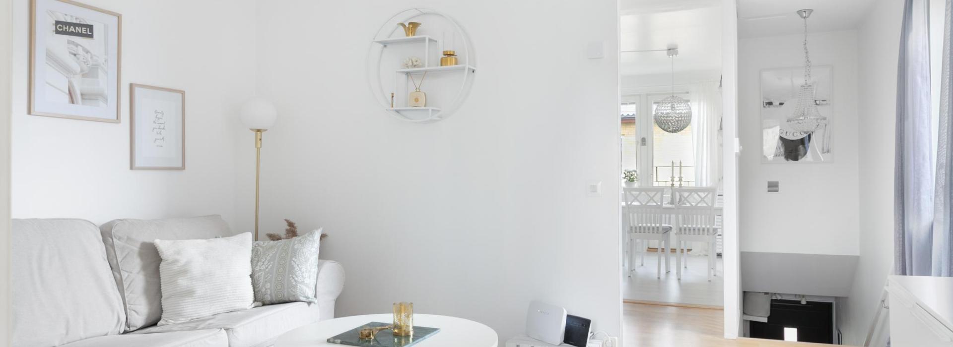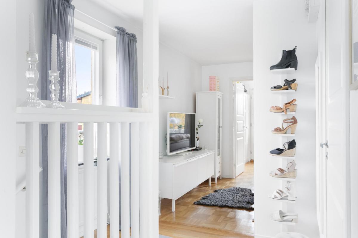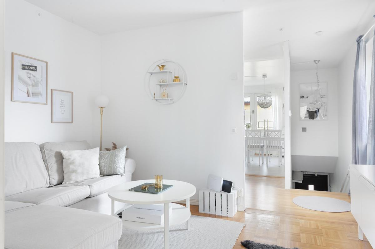 Ljust och mysigt vardagsrum med plats för soffa, soffbord och TV. Rummet var tidigare ett stort allrum som har delats av med en vägg för att få ett separat sovrum. Ekparkettgolv.